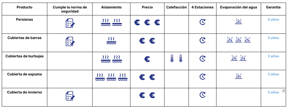 Nuestras cubiertas te ofrecerán muchas ventajas: aislantes, calefactoras o cubiertas seguras , ¡tenemos todas las soluciones sea cual sea tu piscina!